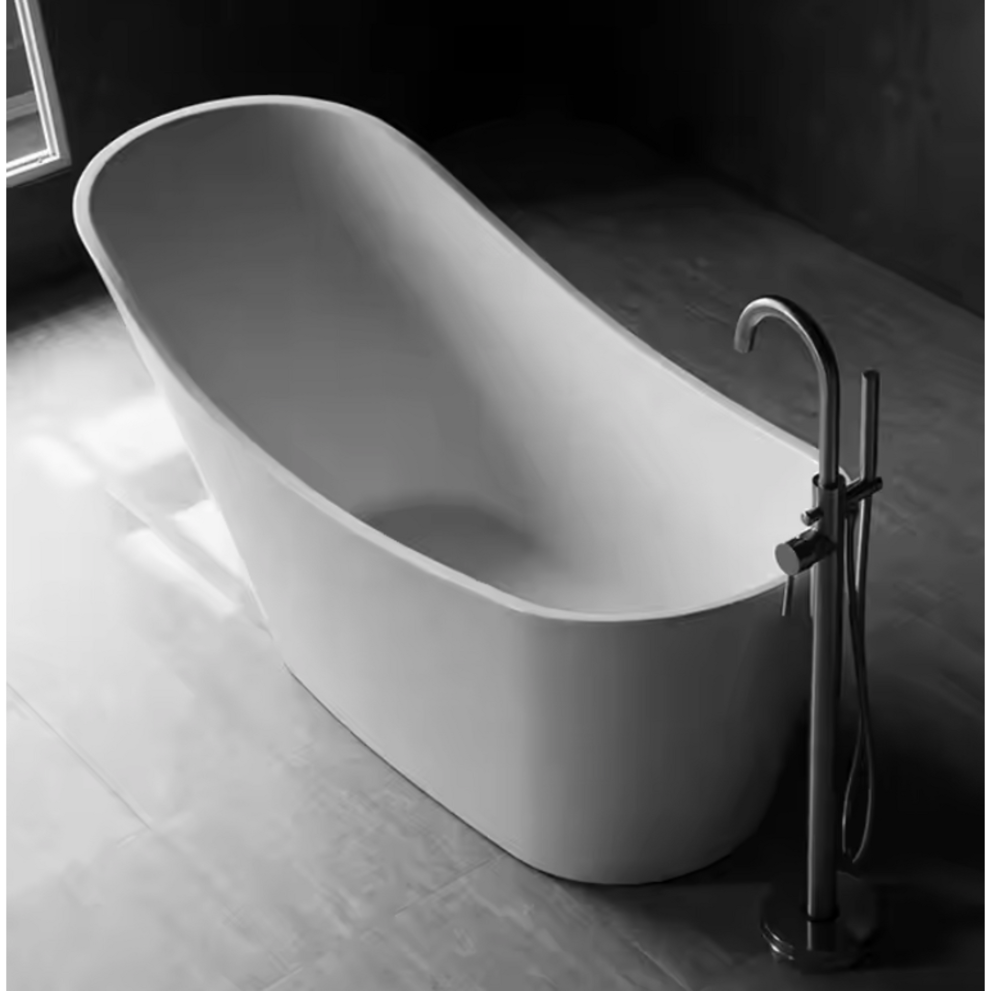 The AquaElegance Solace Freestanding Bathtub offers a refined and serene bathing experience. With its sweeping, ergonomic contours and deep basin, this sculptural masterpiece is made from high-density acrylic for lasting durability. The tall, minimalist floor-mounted faucet adds a touch of spa-like luxury to your bathroom oasis.