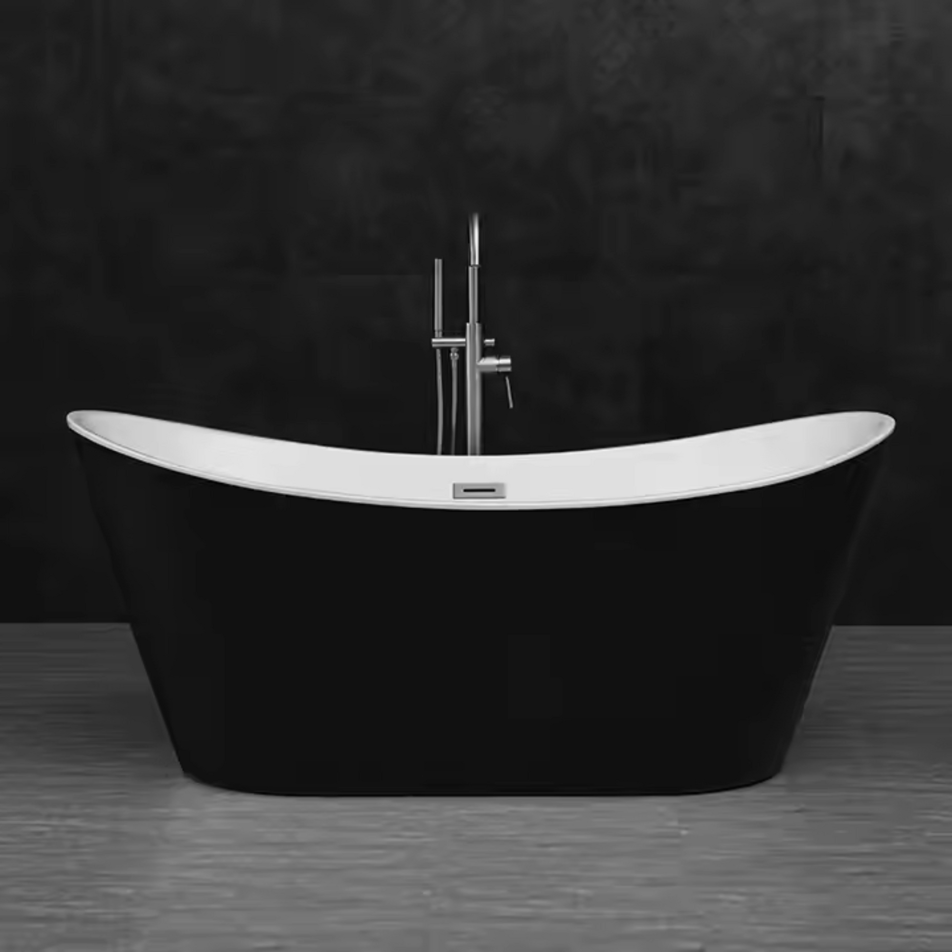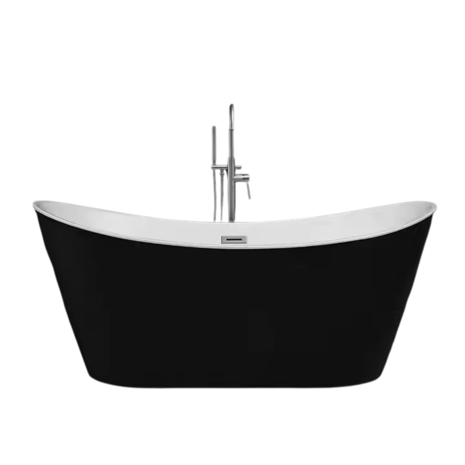 The NoirWave Cast-Iron Slipper Tub combines vintage charm with modern elegance. Featuring a striking black exterior and classic white enamel interior, this deep soaking tub is built from cast iron for exceptional heat retention and lasting durability. Its gracefully curved high backrest offers the perfect silhouette for relaxation.